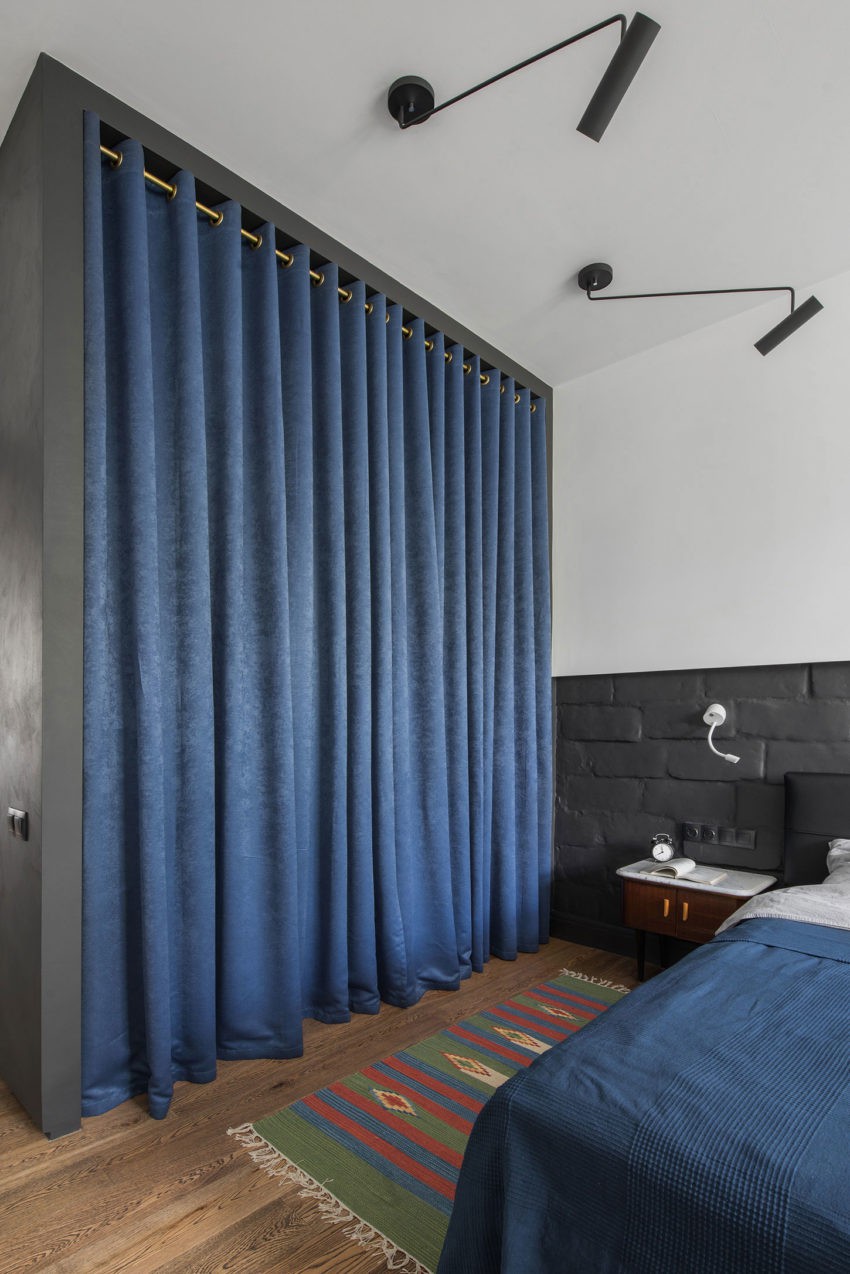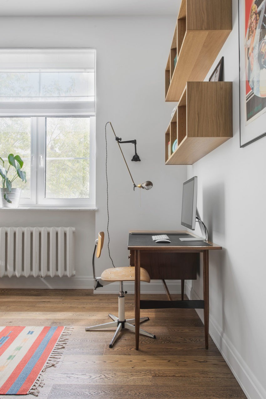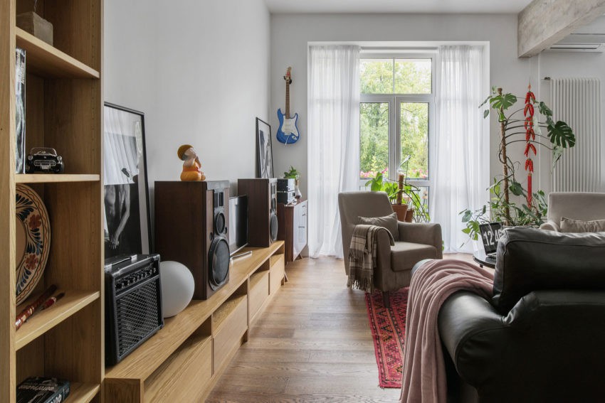 Người chịu trách nhiệm cho việc chuyển đổi căn hộ ban đầu có cái nhìn ảm đạm này là kiến trúc sư Maxim Tikhonov, đến từ công ty kiến trúc m2project, người biến nó thành một không gian hiện đại với tính liên lạc với sắc màu retro đậm chất trước đó.