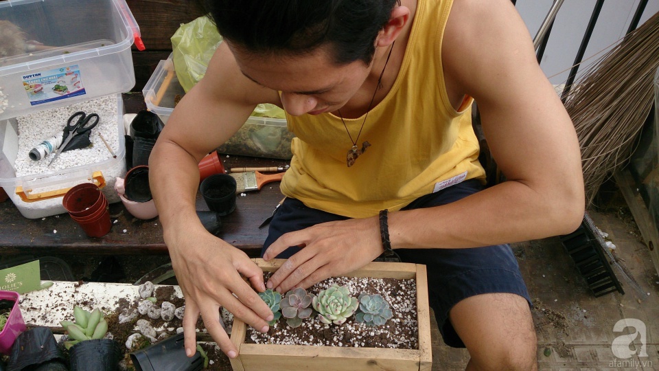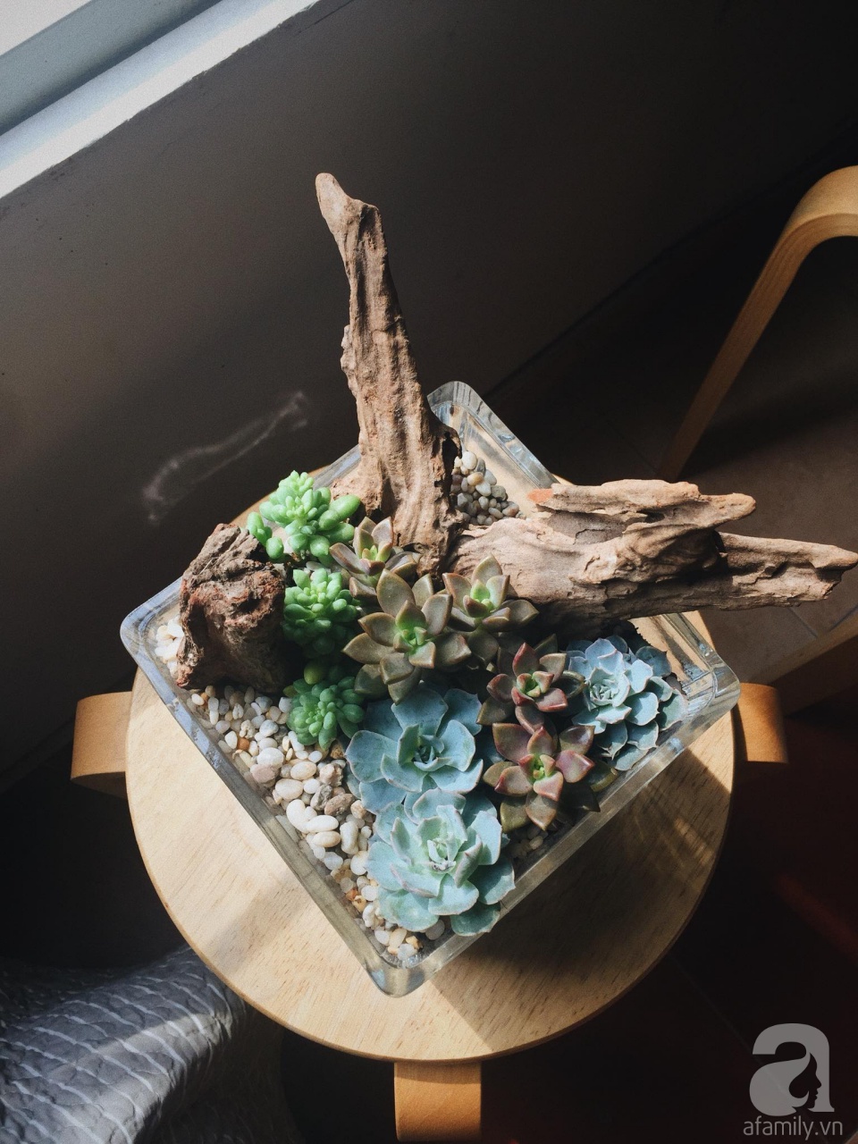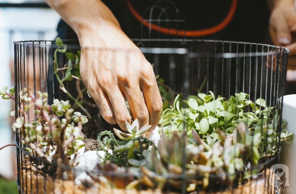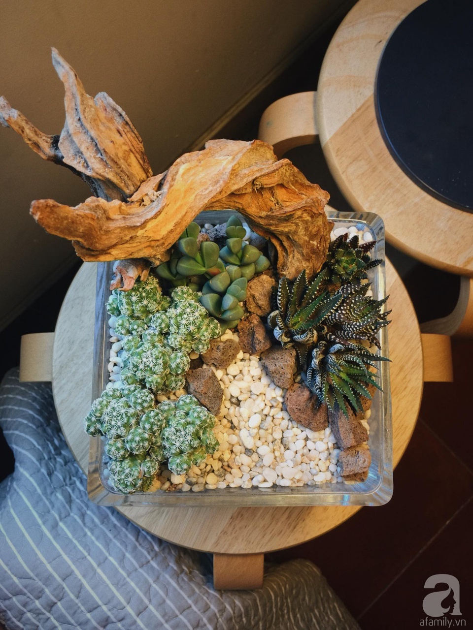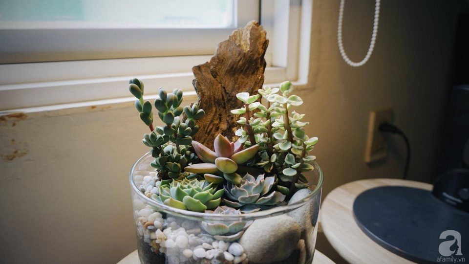 Những tiểu cảnh Terrarium từ sen đá, từ xương rồng và rất nhiều những phụ kiện nhỏ xinh được sắp xếp bằng tất cả sự tinh tế và nghệ thuật của chàng họa sĩ trẻ đã mang đến những tác phẩm đầy ấn tượng làm đẹp tổ ấm.