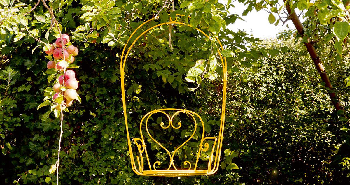 Còn khi bạn linh hoạt và sáng tạo hơn để treo chiếc ghế màu vàng cam này lên thì khu vườn nhà bạn đã có một đồ nội thất mới giống như một chiếc xích đu và cũng có thể đóng vai trò như một vật chứa đựng đồ đạc vậy.
