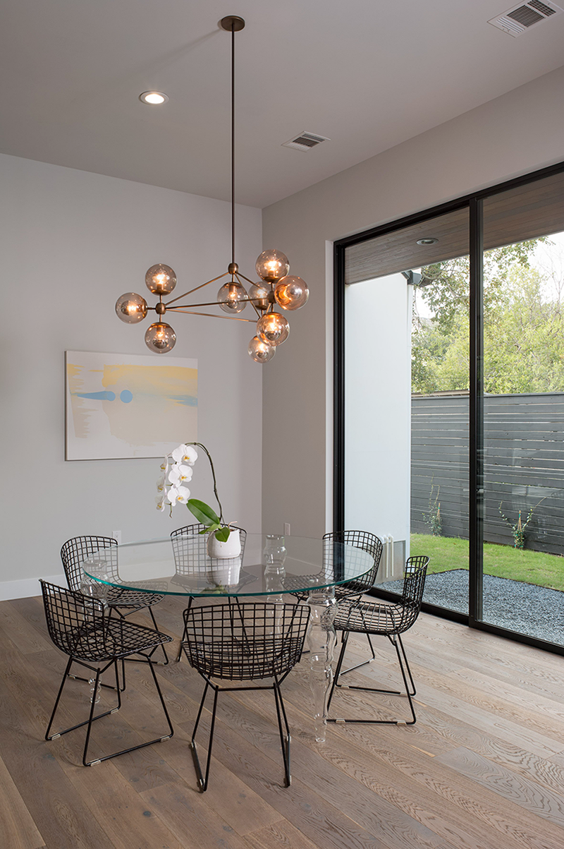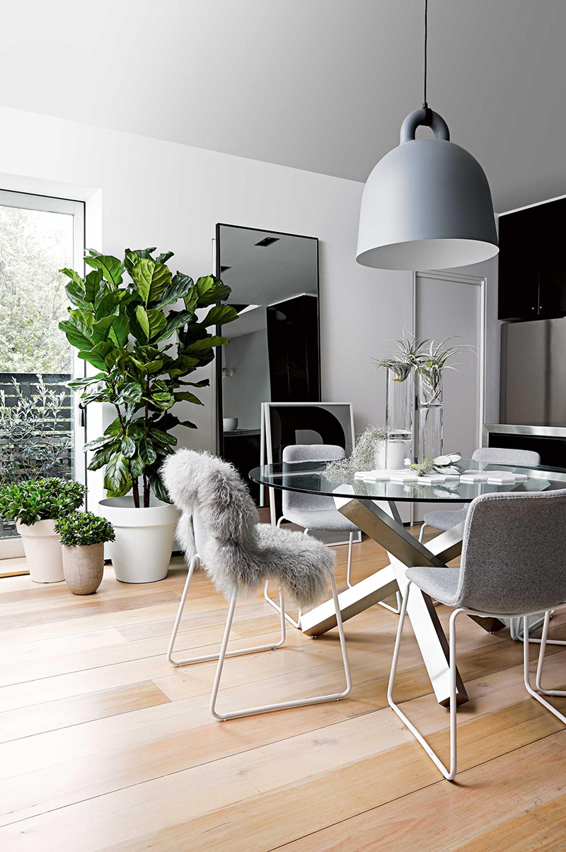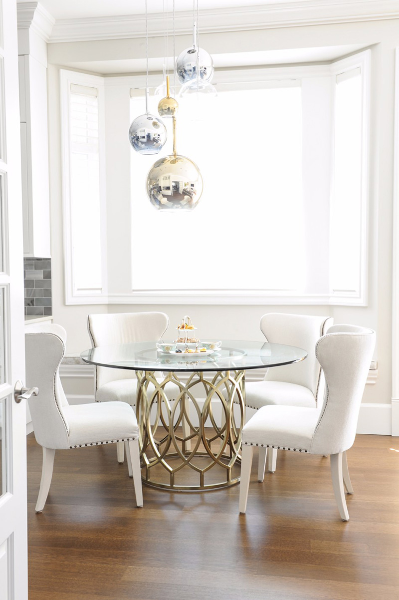 Nếu căn phòng ăn nhà bạn không quá lớn, lựa chọn bàn ăn tròn mặt kính sẽ khiến không gian sinh hoạt chung của gia đình trông cuốn hút hơn trong tức thì.