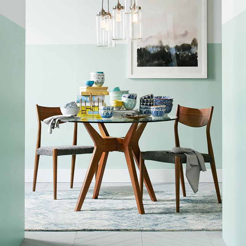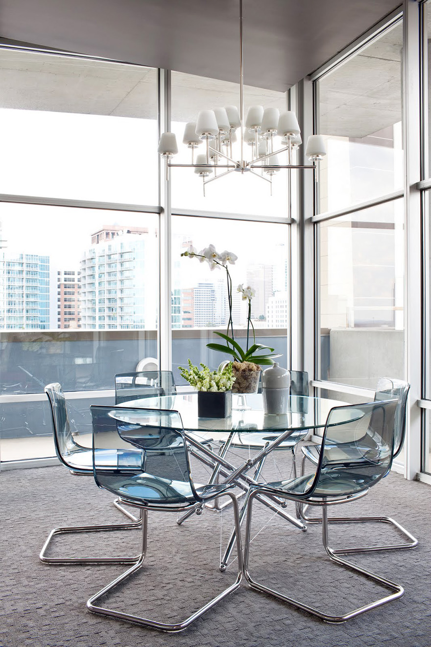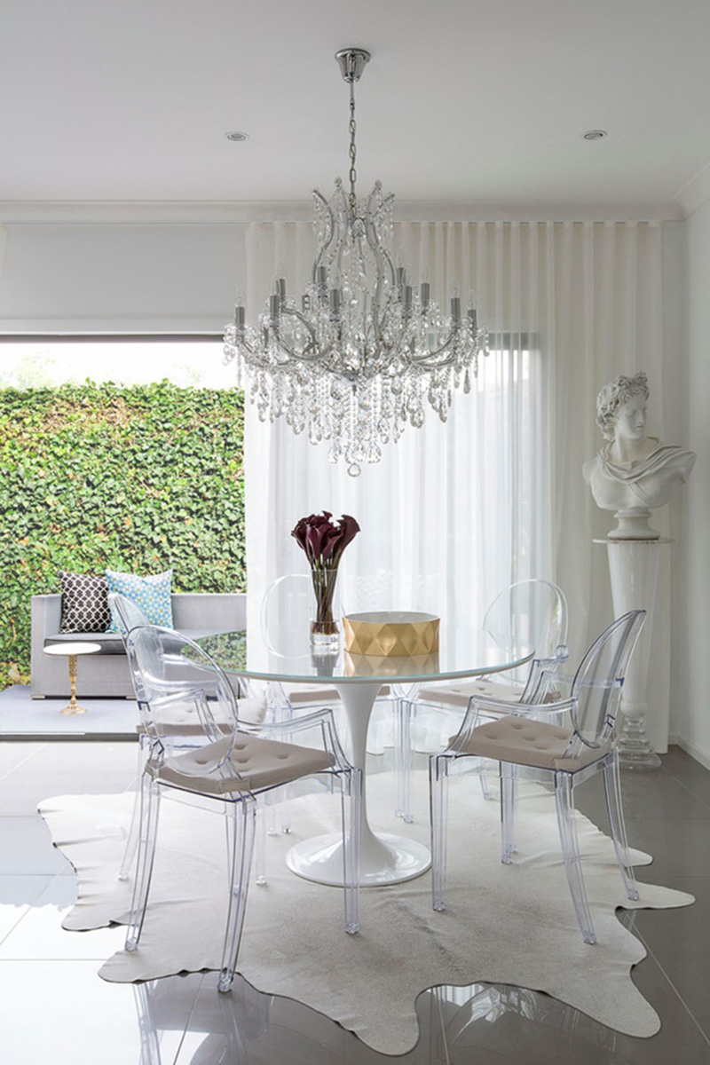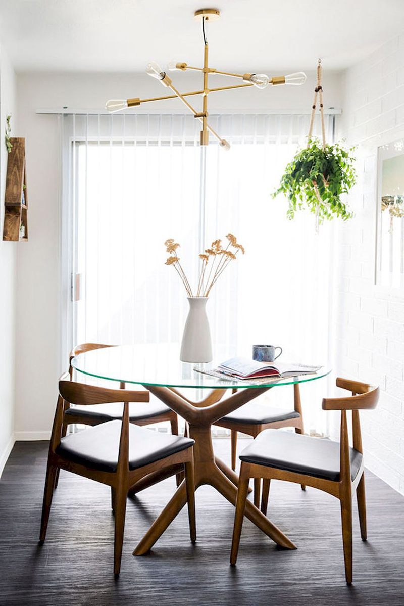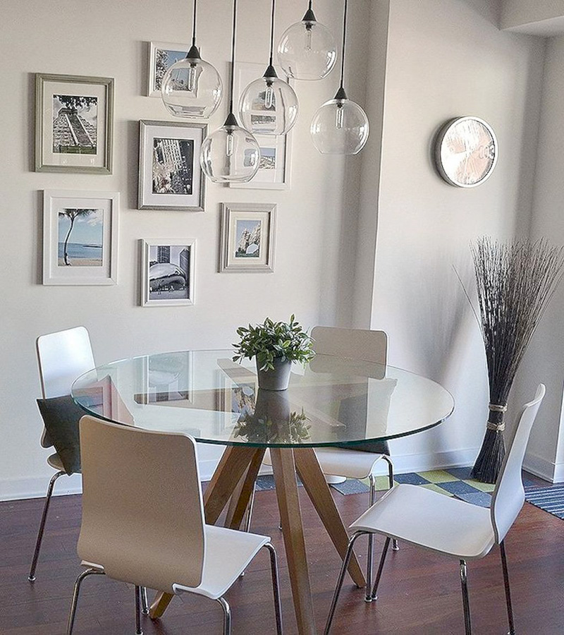 Kiểu bàn ăn tròn mặt kính cho bạn nhìn xuyên qua bởi vậy mà bạn cảm thấy nó không hề chiếm phần diện tích nào cả.