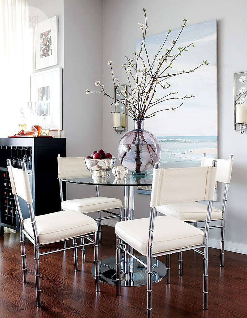 Bàn ăn tròn mặt kính có độ phản sáng tốt hơn bất kỳ loại mặt bàn nào nhờ đó mà căn phòng ăn trông tươi sáng và rộng rãi hơn nhiều.