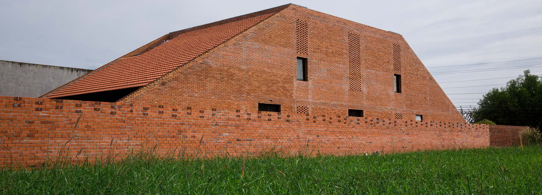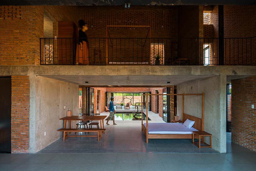 Chất liệu gạch đỏ mộc khiến ngôi nhà này nhìn từ xa rất dễ tạo cảm giác là một lò gạch. Tuy vậy, nếu bước vào bên trong, chắc chắn bạn sẽ bất ngờ trước sự sáng tạo, sự hiện đại hòa quyện với truyền thống trong nhà.