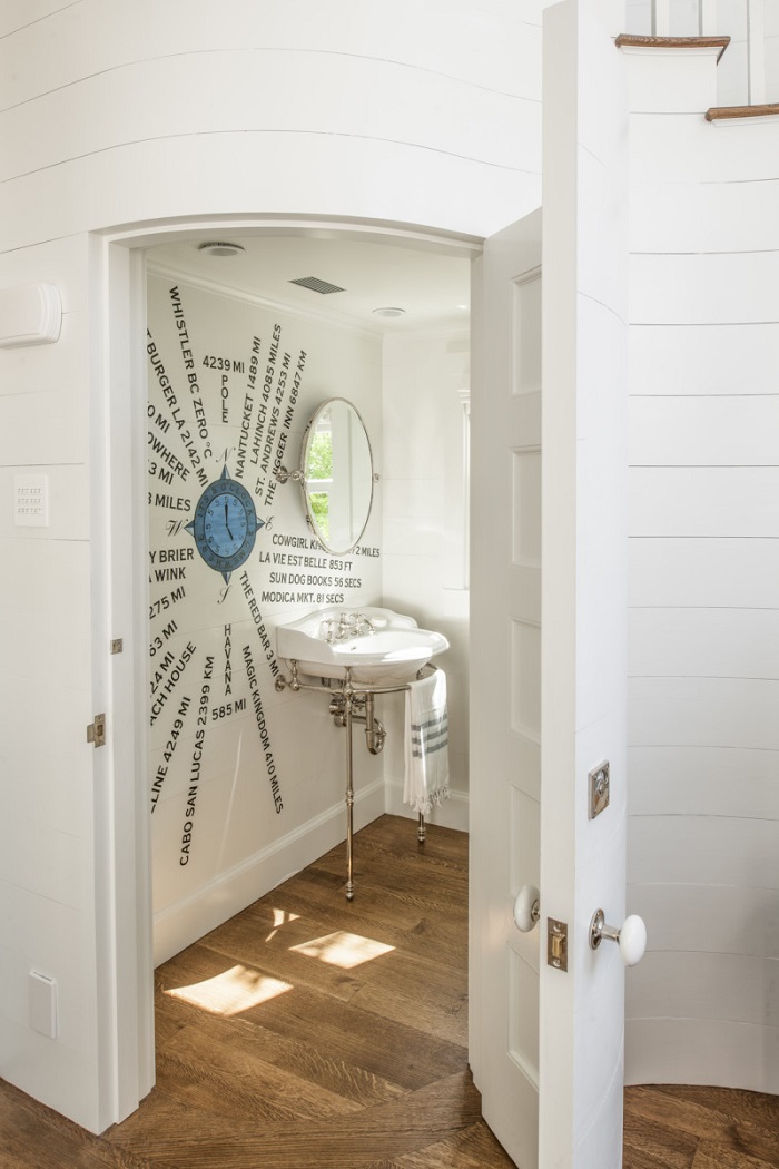 Lấy cảm hứng từ biển nên chiếc tường trong phòng vệ sinh dưới gầm cầu thang này cứ như một tác phẩm nghệ thuật.
