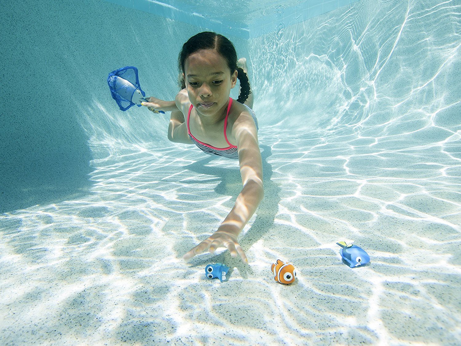 Nếu con bạn là fan của các nhân vật đáng yêu trong Finding Dory, bộ đồ chơi lặn tìm các nhân vật hoạt hình này chính là một gợi ý hay ho. Bộ đồ chơi gồm 5 nhân vật trong Finding Dory và một chiếc vợt. Trẻ sẽ lặn xuống nước để truy tìm các nhân vật và đựng vào trong chiếc vợt. Hoặc đơn giản hơn, bạn chỉ cần thả bộ đồ chơi này vào nước để trẻ ngồi chơi.