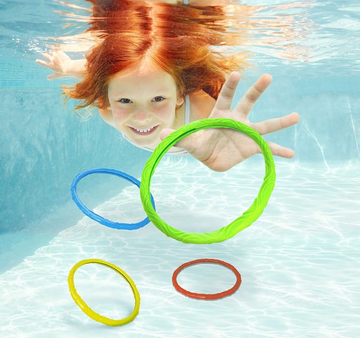 Một lựa chọn khác chính là lặn tìm nhưng chiếc vòng màu sắc này. Đây không chỉ là đồ chơi cho trẻ con mà hẳn sẽ mở ra một cuộc đua bơi lội cho tất cả các thành viên gia đình bạn bè để xem ai là kình ngư chụp vòng nhanh nhất đấy.